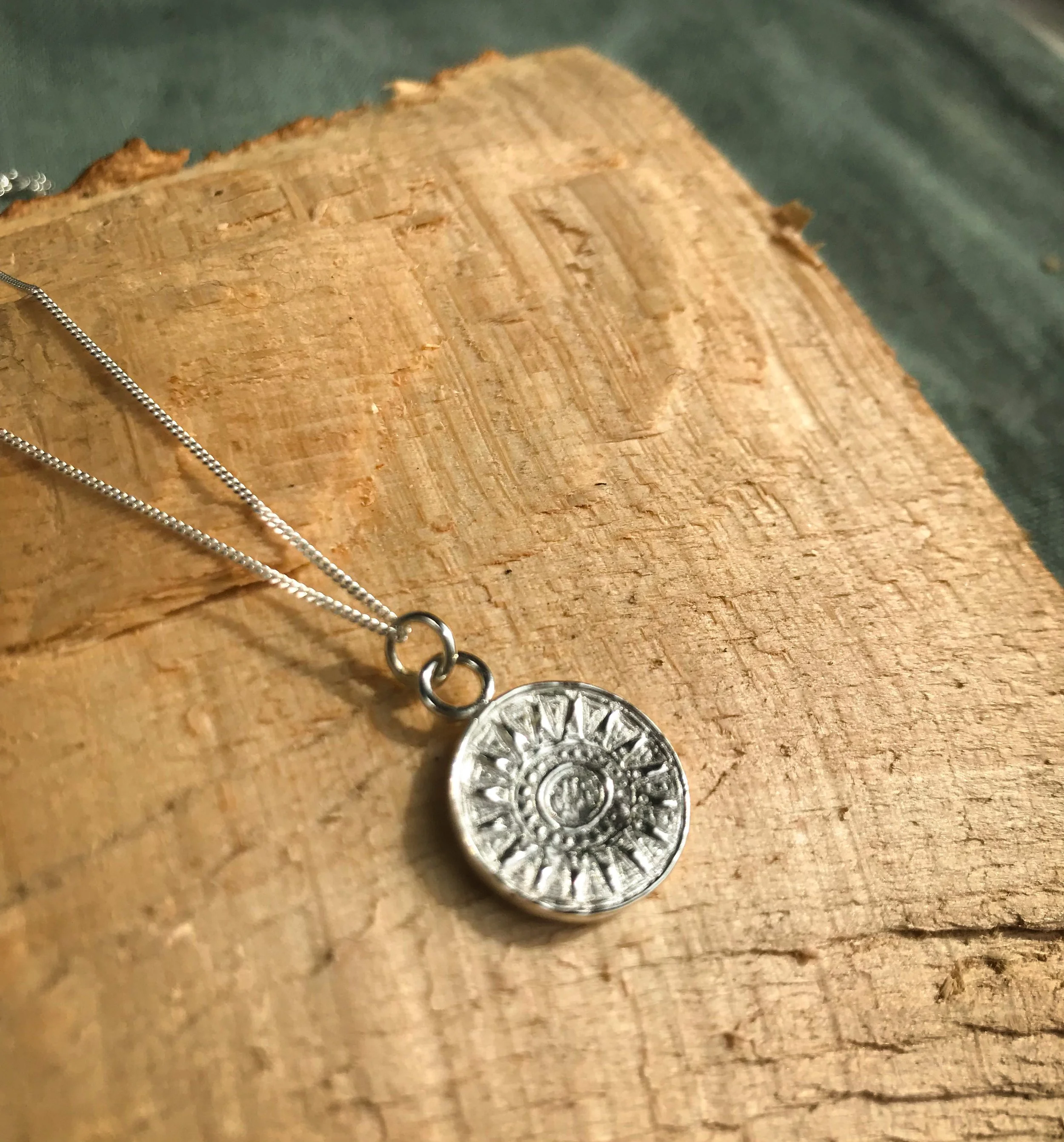 Our best seller, the Sunbeam pendant, is elegant with its textured pattern. It comes on a beautiful delicate italian chain which can also be worn alone or layered with other pendants. This sunny piece will be sure to brighten up her day.
